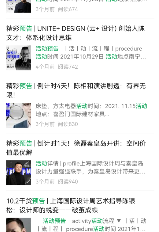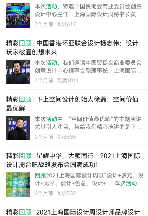 匠心设计奖 / 金梁设计奖 / 新锐设计奖 / 未来之星设计奖 / 当代女性设计奖 / 家装设计时代风云榜 / 致敬东方设计 / 年度设计机构风云榜 / 别墅大宅设计奖 / 人居空间设计奖 / 金维软装奖 / 全球酒店设计年度国际峰会 / 餐饮空间设计大赏 / 办公设计智囊团 / "设计不打烊"店装-展陈设计 / 商业地产设计趋势大会 / 国际色彩趋势大会 / 百年民宿设计图鉴 / 中国全案设计大会 / 设计无国界 / 设计有思想 / 生活方式与未来场景设计奖 / 中国设计南北十人行 / 异路同途