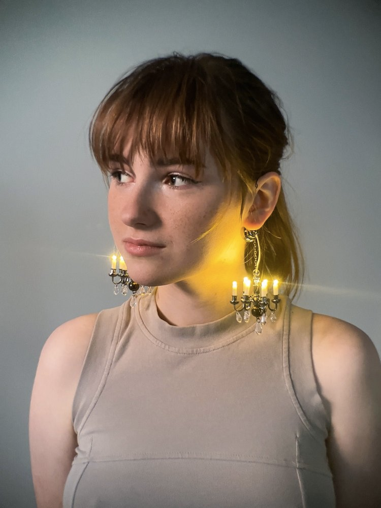 这些会发光的饰品,主要是耳环和耳坠一类的饰品,饰品的造型,也极尽可能地去模仿各种灯饰,这些发光饰品有常见的奢华吊灯、朋克风灯笼和枝状吊灯,看上去就像是把家里的吊灯缩小几十倍以后,挂到耳朵上一样。