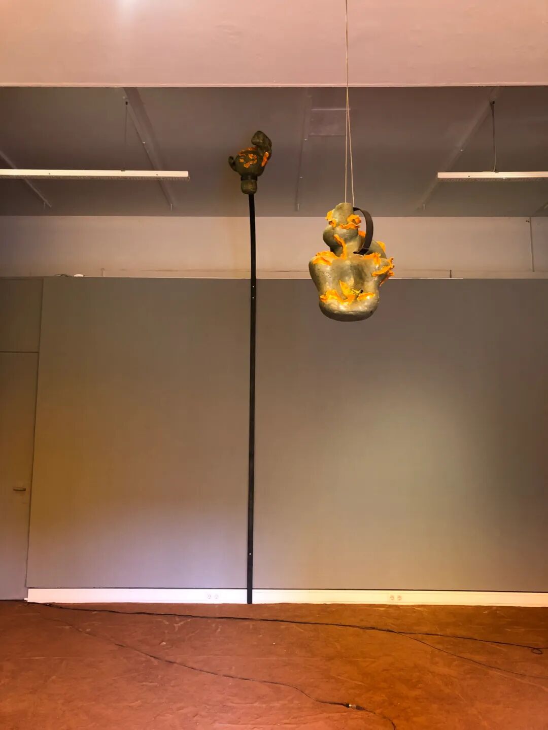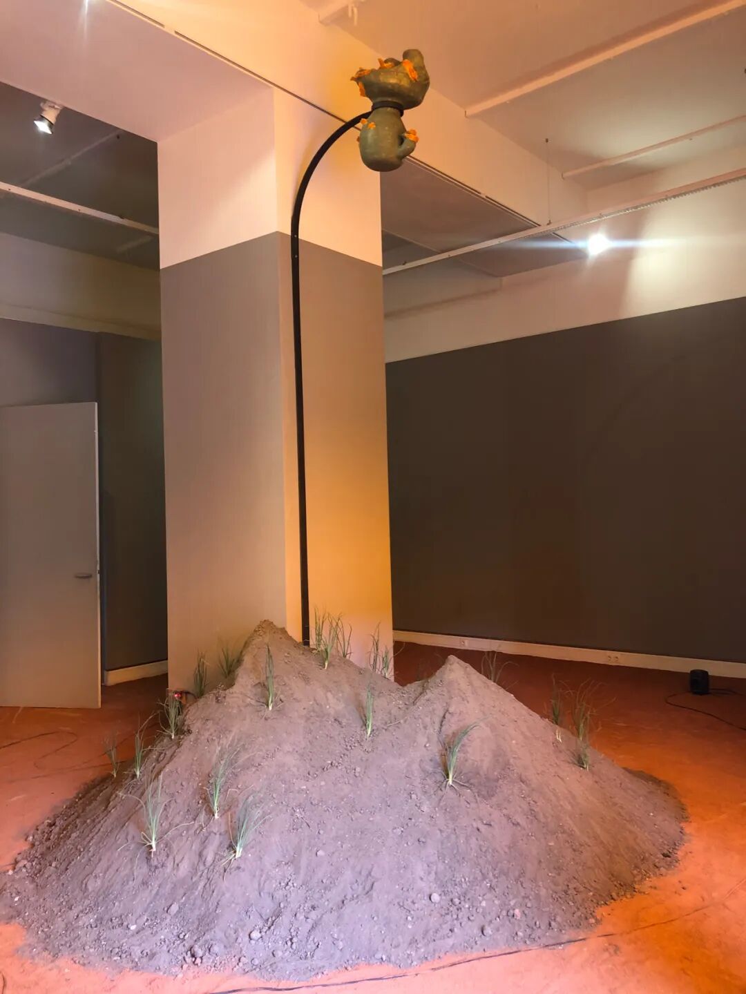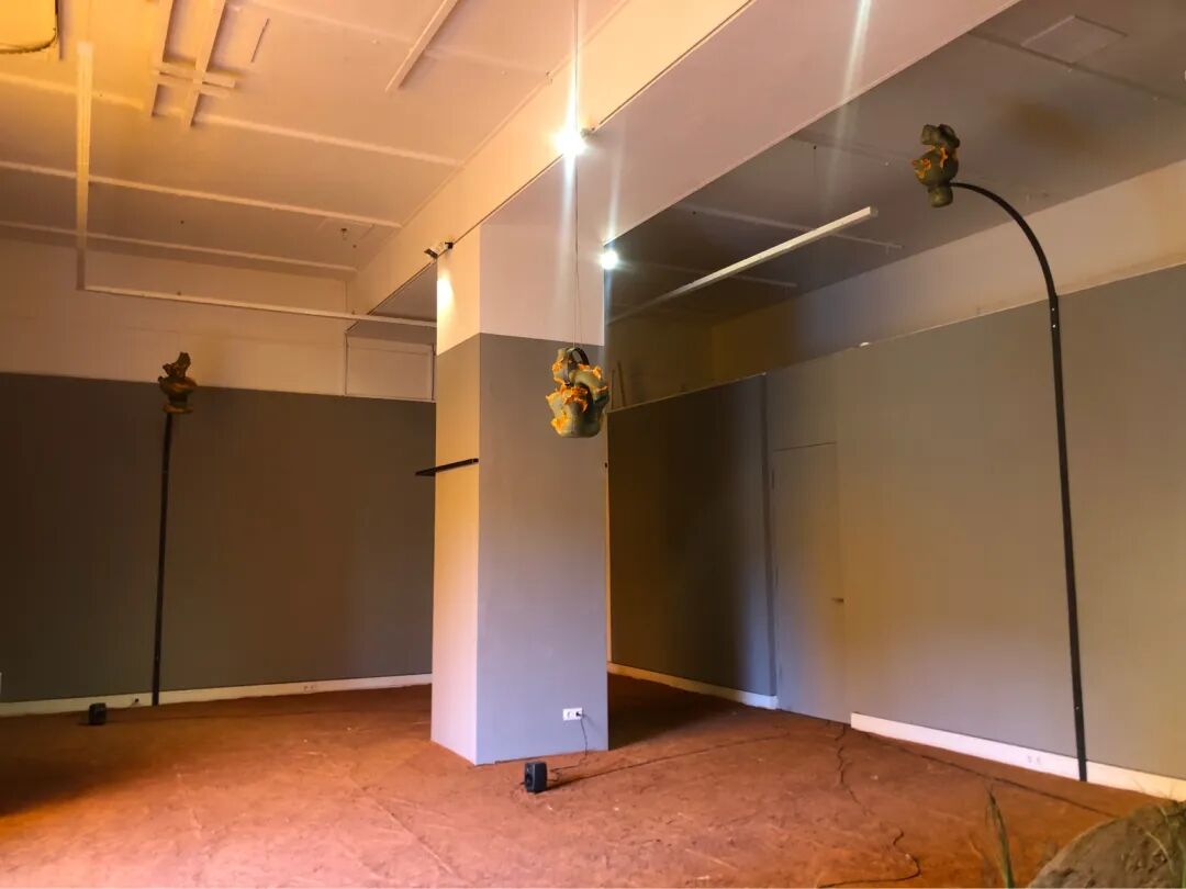 一束橙色的光射在砖红色崎岖的地板上。电子耳语穿过房间。植物穿透堆积的土壤层。在透明色彩的氛围中,Kim Bode 在 Galerie im Turm 展示了她的作品,名为那些在分子中滑动的作品。法兰克福门的灰色、裸露的骨料混凝土与这个原始环境形成鲜明对比,为审讯和新想法开辟了空间。