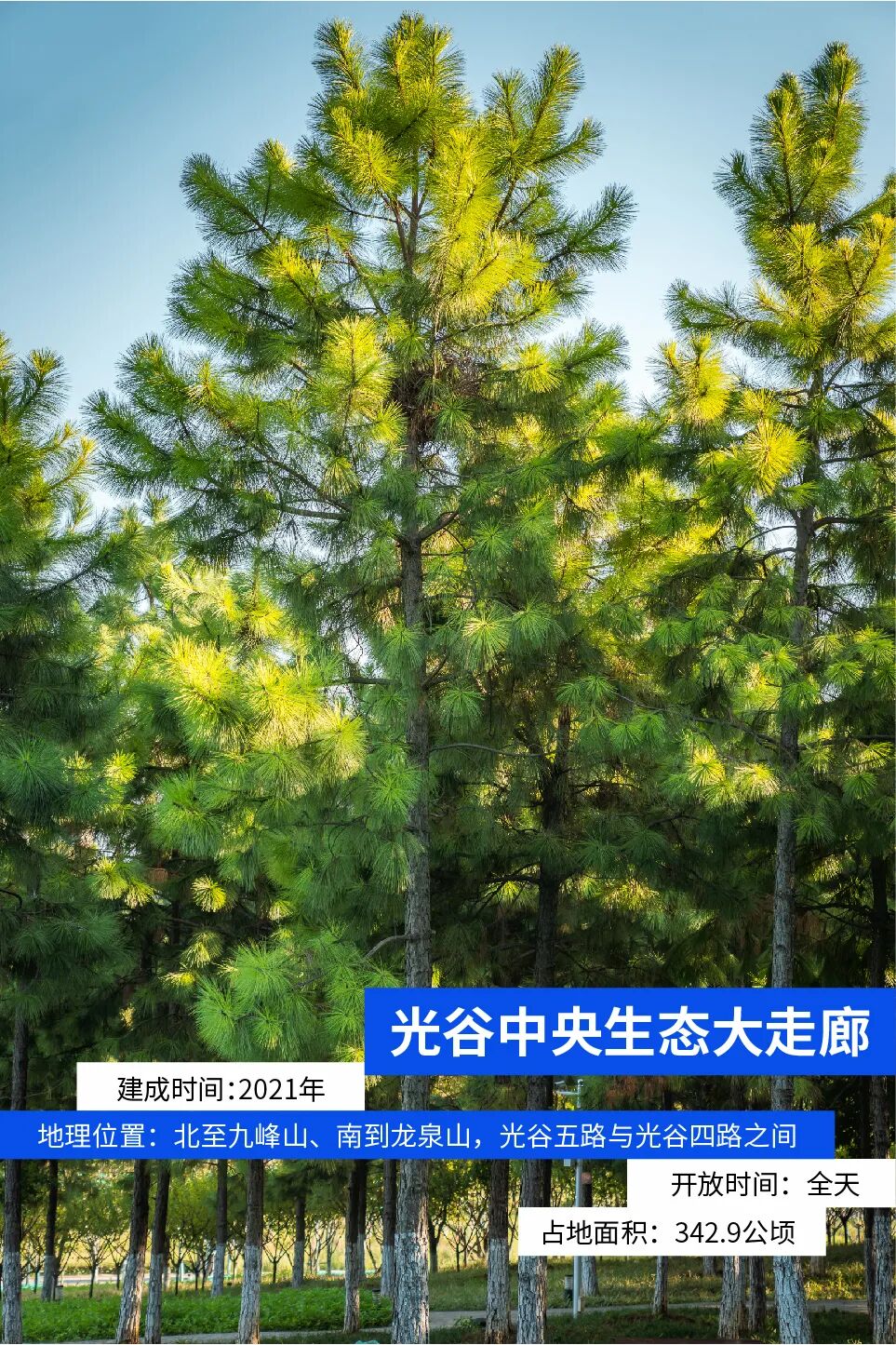 光谷中央生态大走廊全长10.3公里、面积378.8公顷、绿道18.7公里,预计2021年12月开园。九峰山就是这条大走廊的起点。