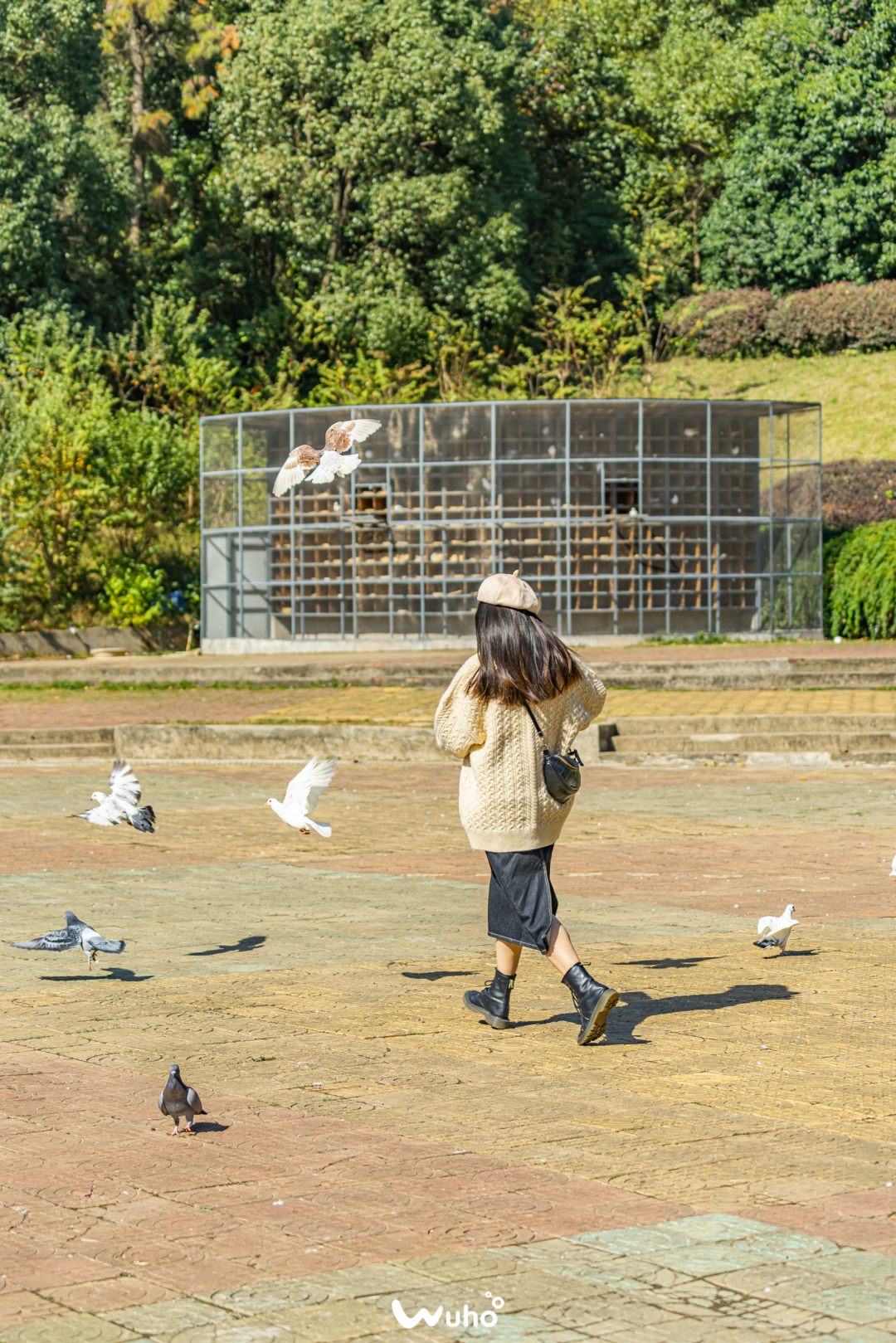 百余只小胖鸽大摇大摆到处觅食,活泼的小眼珠滴溜溜转,啄食的轻痒触感逗得孩子们咯咯笑。