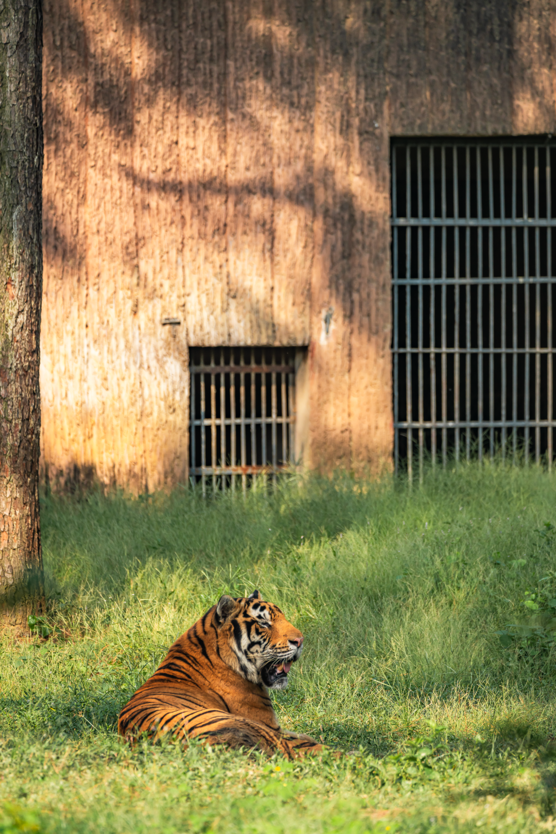 冬日的太阳晒得人暖洋洋,不少人选择在草地上支起帐篷,躺下来晒肚子,和隔壁的老虎同一姿势。