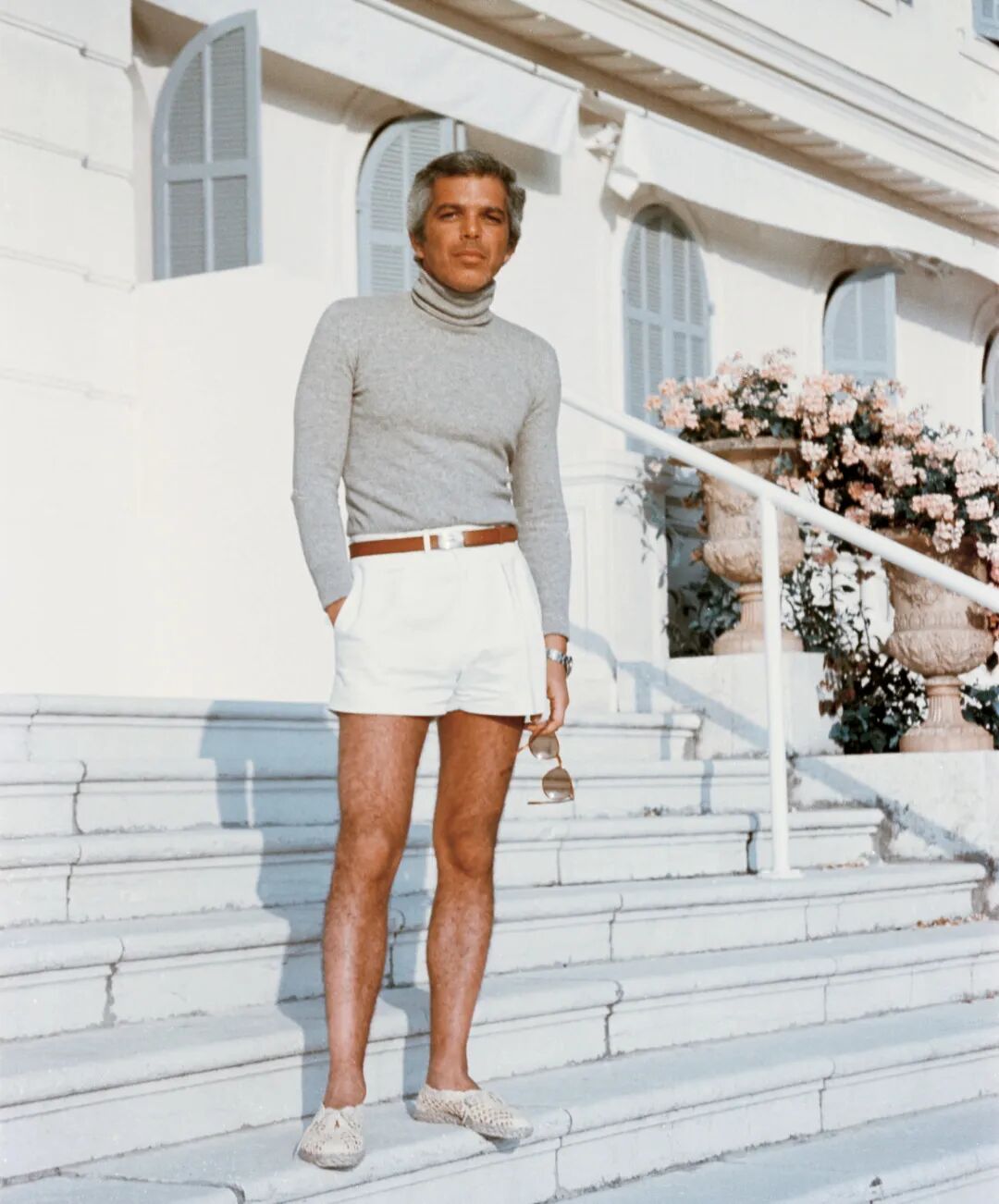 那套针织衫配短裤和草编鞋的造型,和昔日Ralph Lauren在加州度假的装扮如出一辙。
