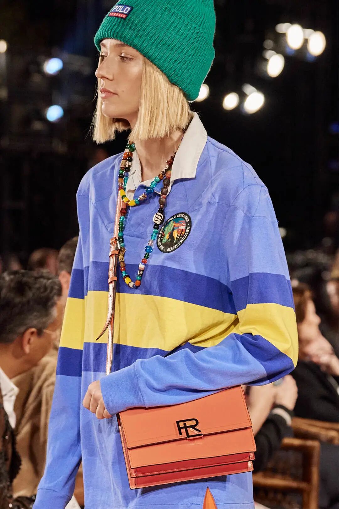 大面积的明亮撞色不局限于Ralph Lauren经典美式学院风的单品上,还有更多适用于各种户外运动的外套、马甲、羽绒服,当然还有必不可少的滑板鞋、徒步鞋和跑鞋……