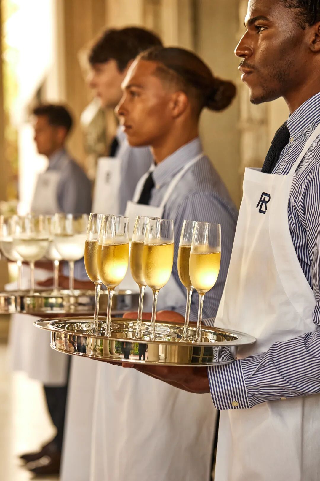 很难不羡慕受邀看秀的人,因为这大概是最像度假的一次看秀体验了。惬意地坐在凉廊藤椅软座上,在秋天微凉的晚风中,品尝来自纽约Polo Bar的经典鸡尾酒,一边欣赏最新一季Ralph Lauren大作。