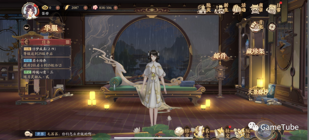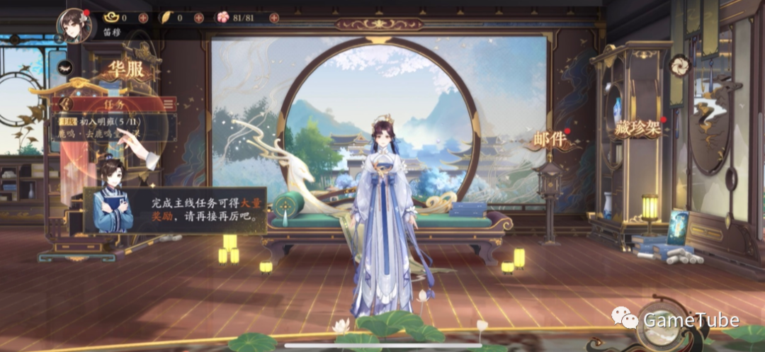 除正中央人物外,屏幕四周也围了一圈功能型UI,虽然占用面积不大,但依然不够简洁,因为再好的画面,手机屏幕就那么大,如此一来略显拥挤这样的场景设计本意是为了凸显古风味十足的摆设和布局,可这样的UI布局有点抢焦点。