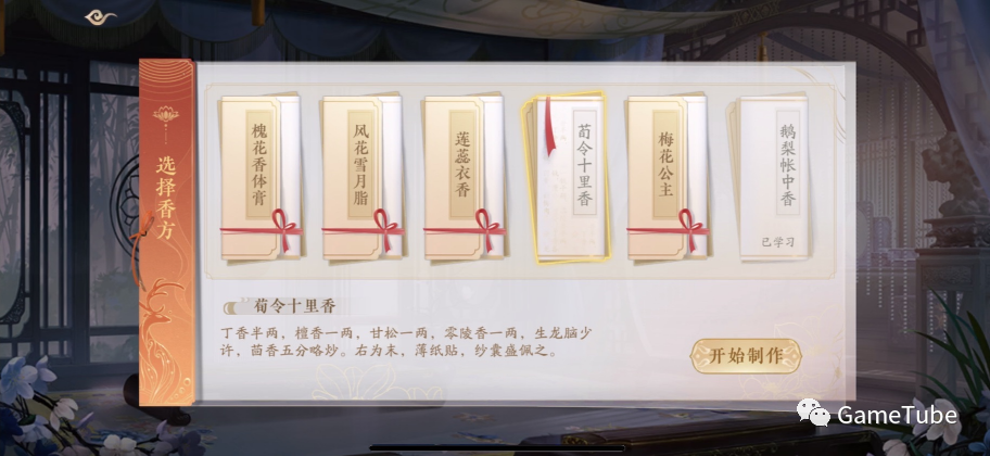 初入游戏时最先接触的是书院,既然是书院自然少不了课堂。课堂上课玩法作为日常玩法是游戏的一大特点之一。契合了整体游戏皇家书院上学的世界观,上学最重要的体验还是上课,游戏设计了制香课、音律课、天文课等课程玩法。这种玩法既有趣味性,又能有一定的知识科普性,一方面,根据每个课程的性质,《花亦山》融入了符合课程体验的不同玩法,比如音律课类似节奏音游。另一方面,游戏里的制香都是根据古书记载的真实配方设计,按照游戏所讲的配方和做法,在现实真的可以做出来。