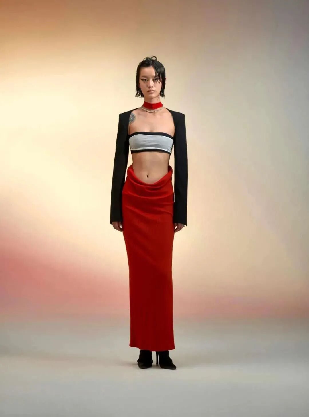 Oude Waag在剪裁上也颇费功夫,利落且带有力量感的设计,让西服兼顾着帅气与飘逸,纤细的裙摆展现女性柔美的同时,也颇为舒适。