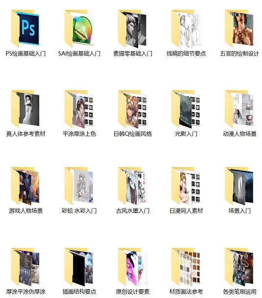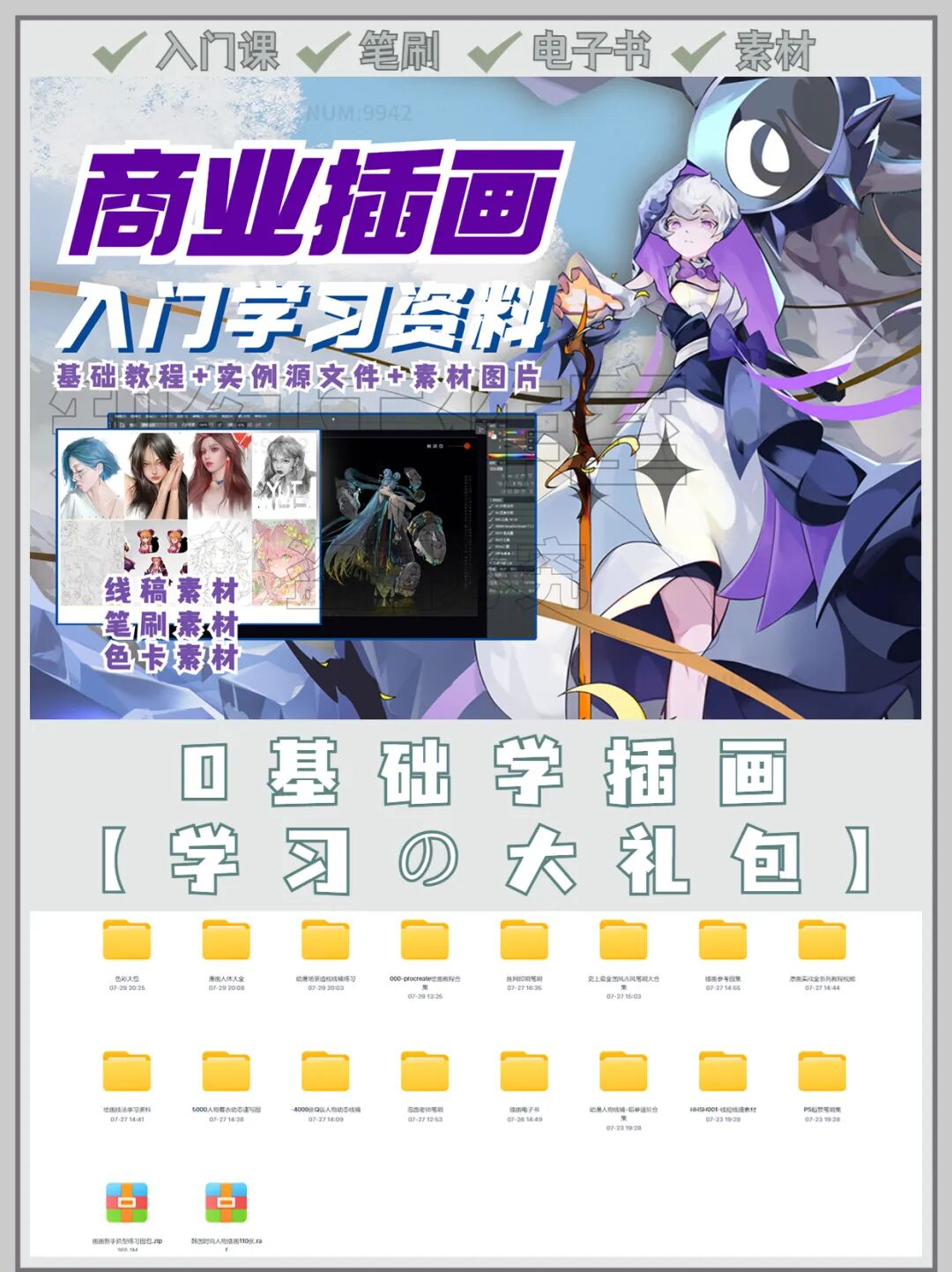 PS软件+插画课程+0基础入门电子书+10000张绘画素材+500款笔刷