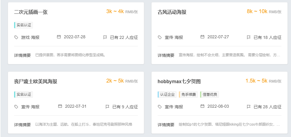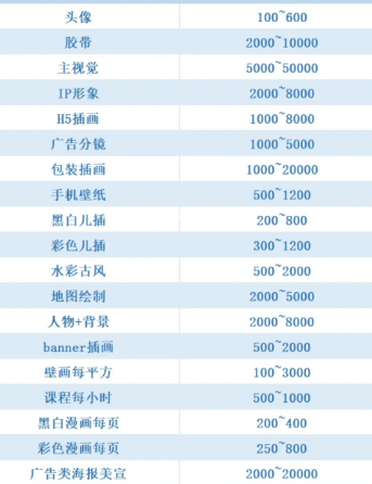 需求很多样,各种场景、头像、人设、海报的报价都不一样