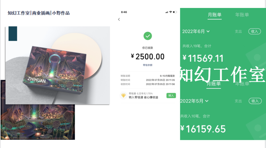 自从她开始用插画接稿以后,画一张包装设计的插画图就是3k起