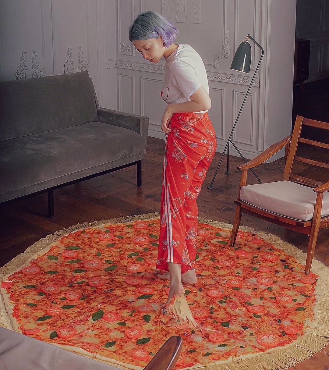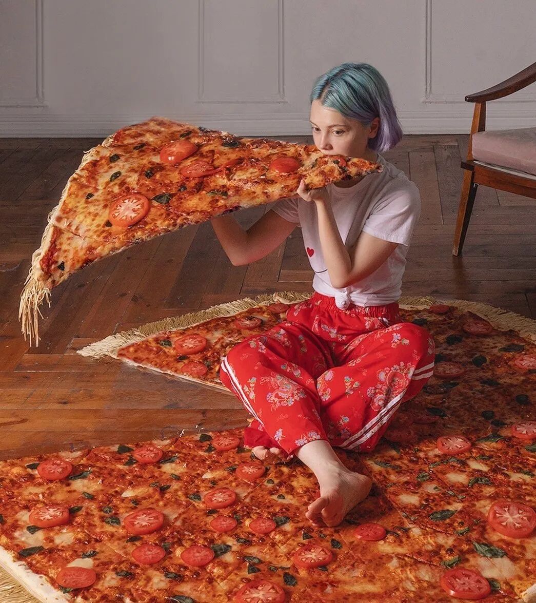 那是陷在了披萨地毯中的少女