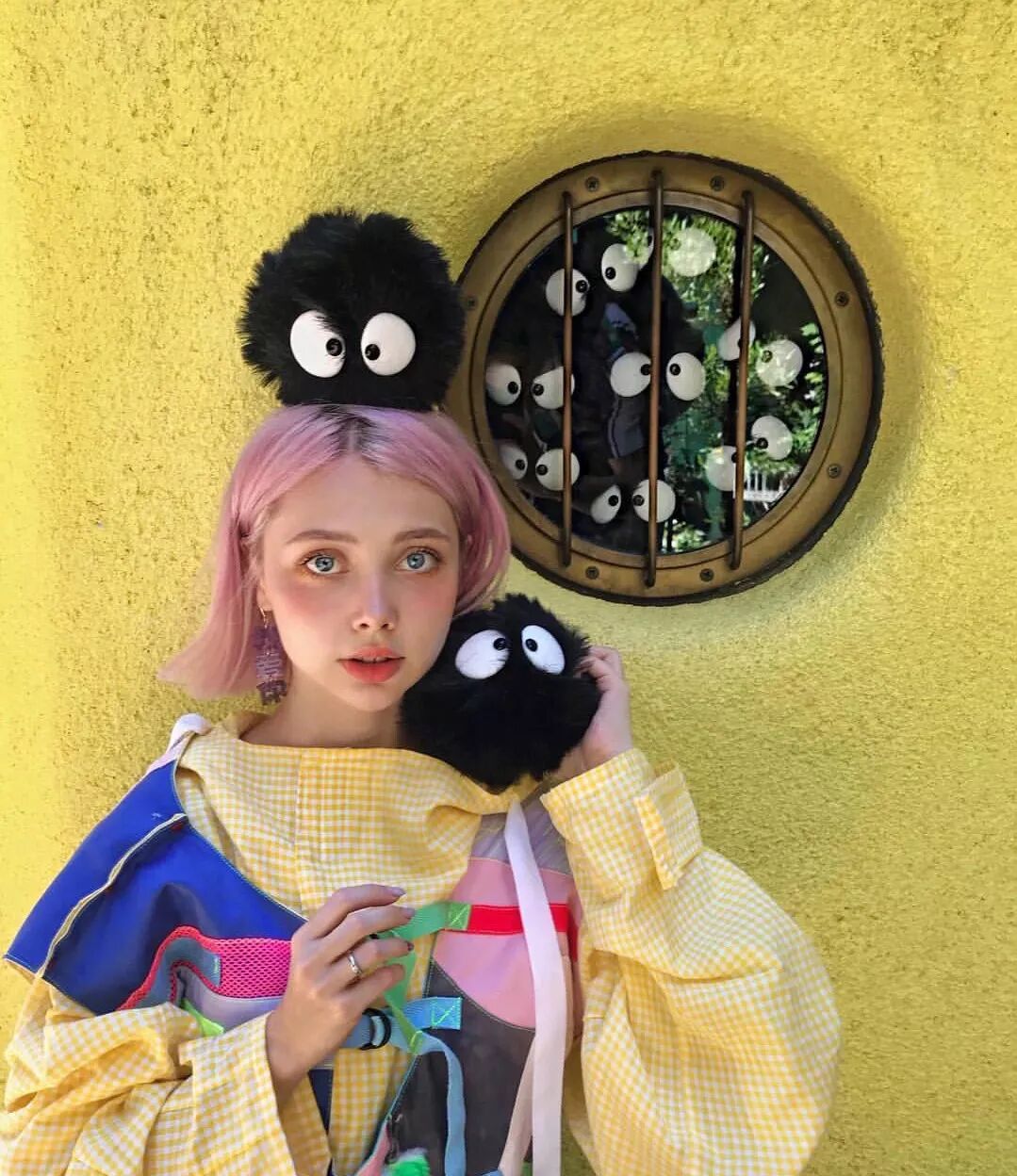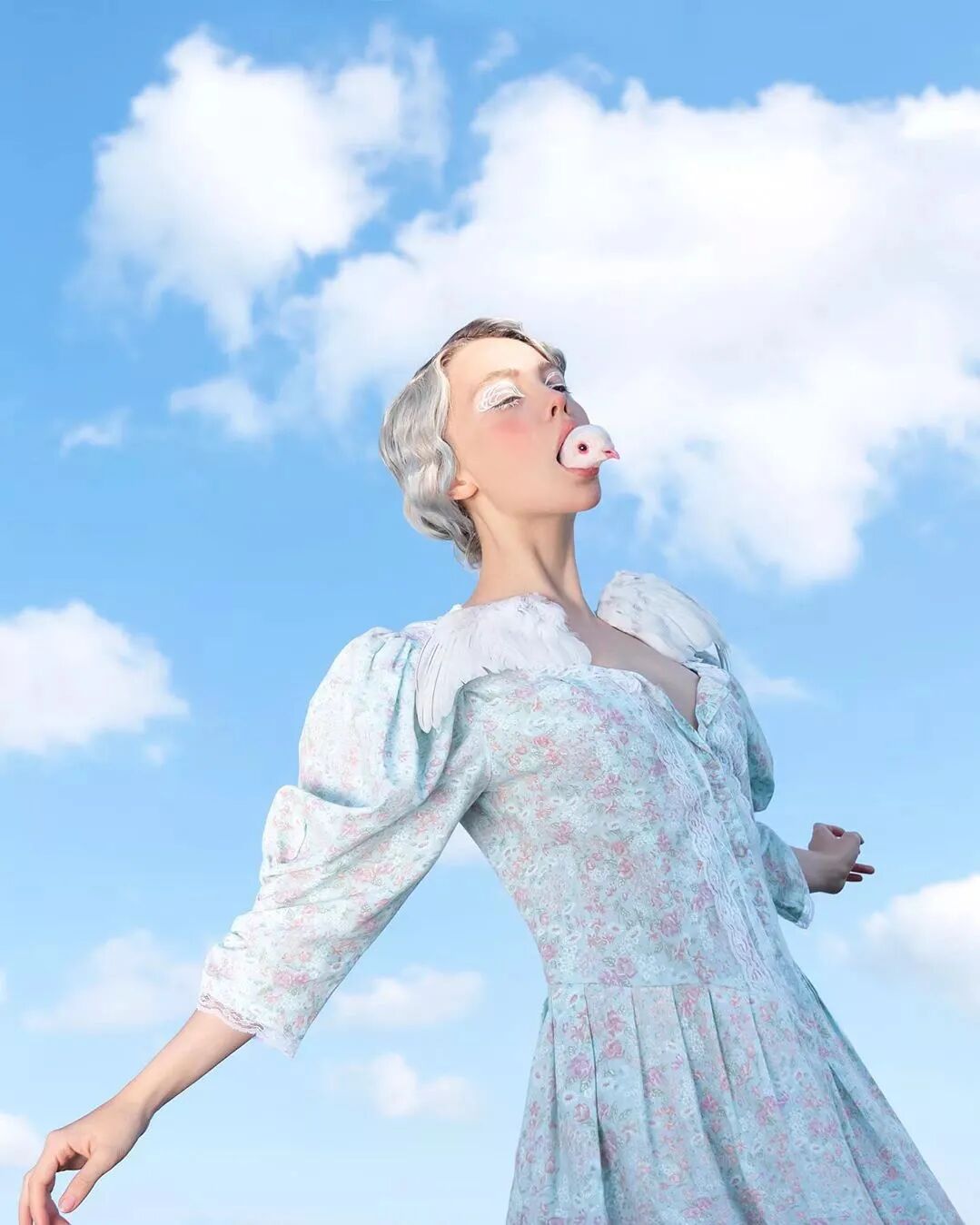 那是用彩色羽毛的鸽子遮住的少女
