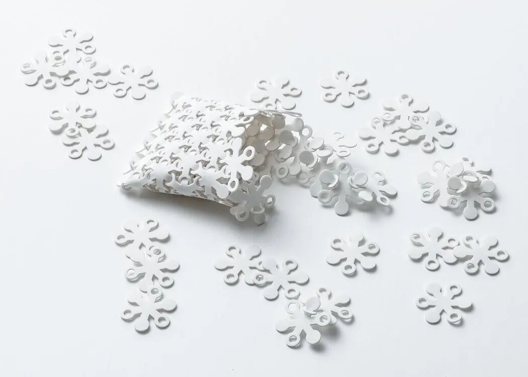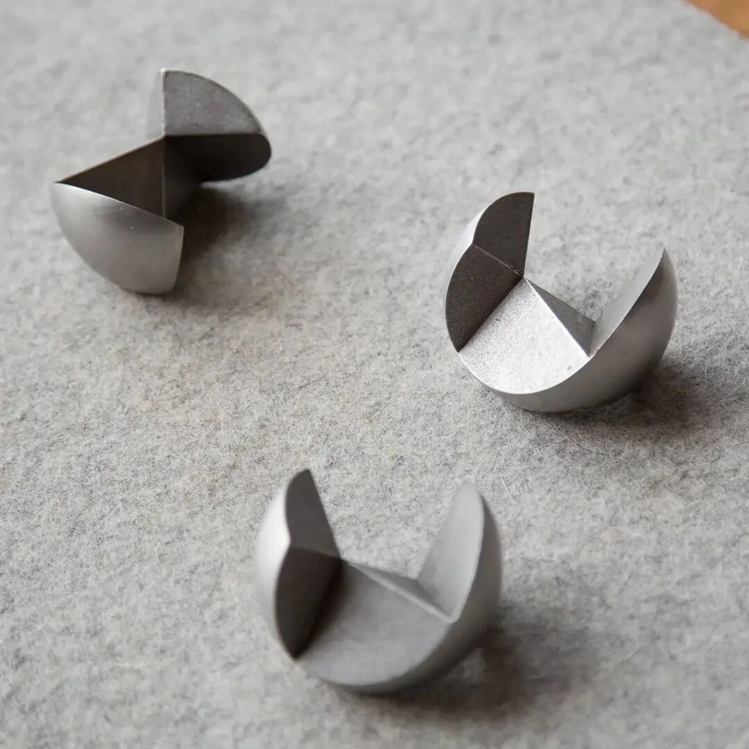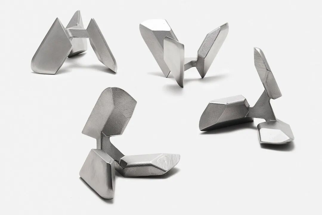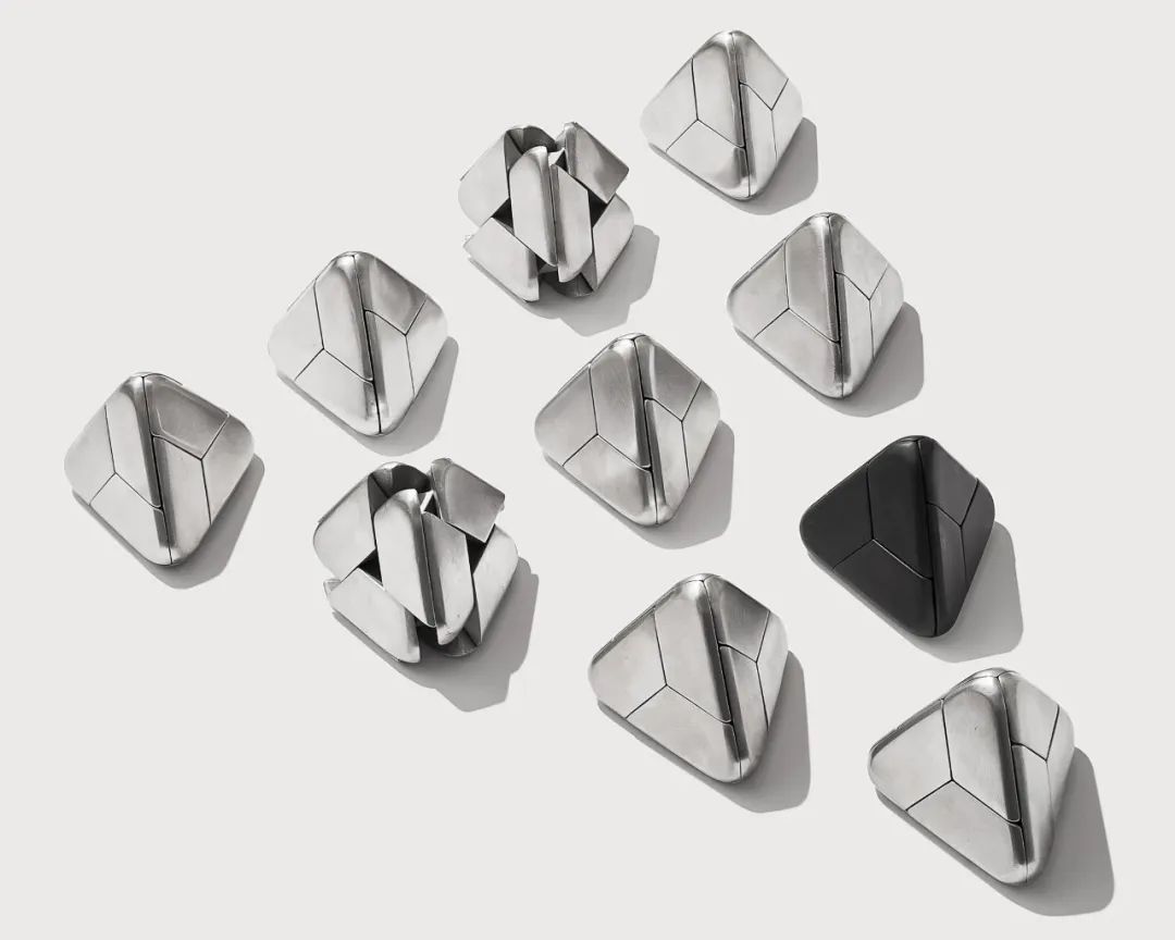 4个金属片在设计上保持统一,通过巧妙的组合方式形成一个完整的形状。