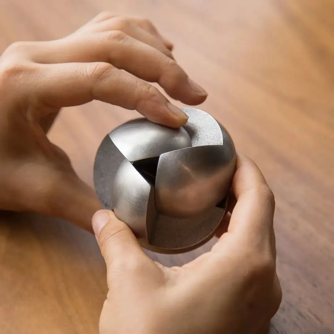 这款球形拼图同样采用金属制造,看似简单的组合,却需要仔细思考才能组合成功。