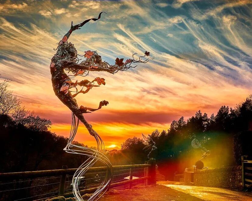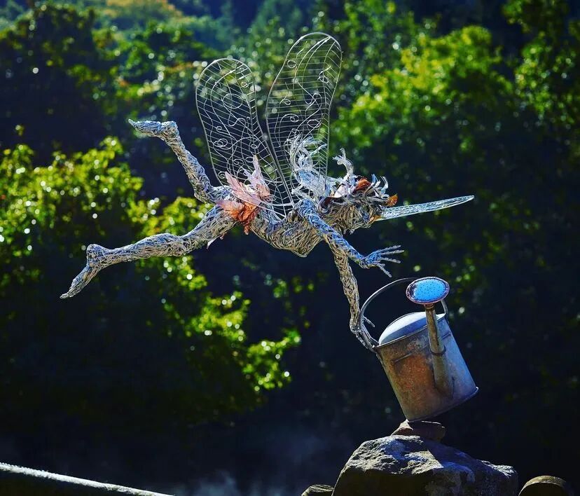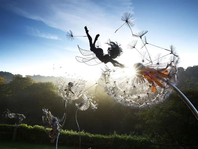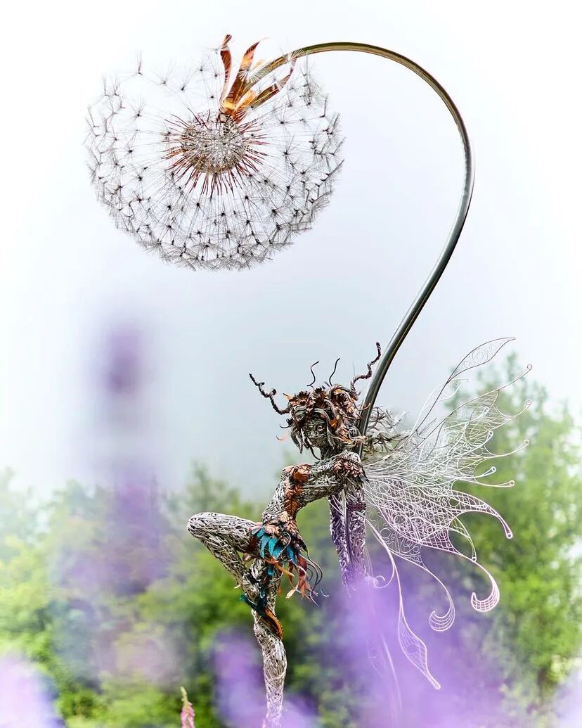 Robin Wight想要超越传统的童话描绘,通过金属丝组成的雕塑来实现。这些仙女雕塑优雅又有力量,与大自然的互动非常奇妙,就像真正的仙子一样在风中飞舞,无不透着生命力,它们通常又与美好的事物联系在一起,能让人暂时逃离现实世界。
