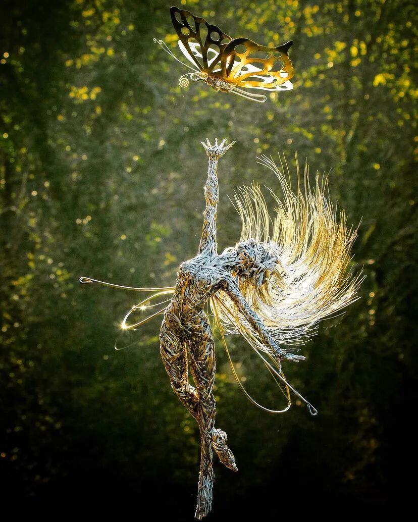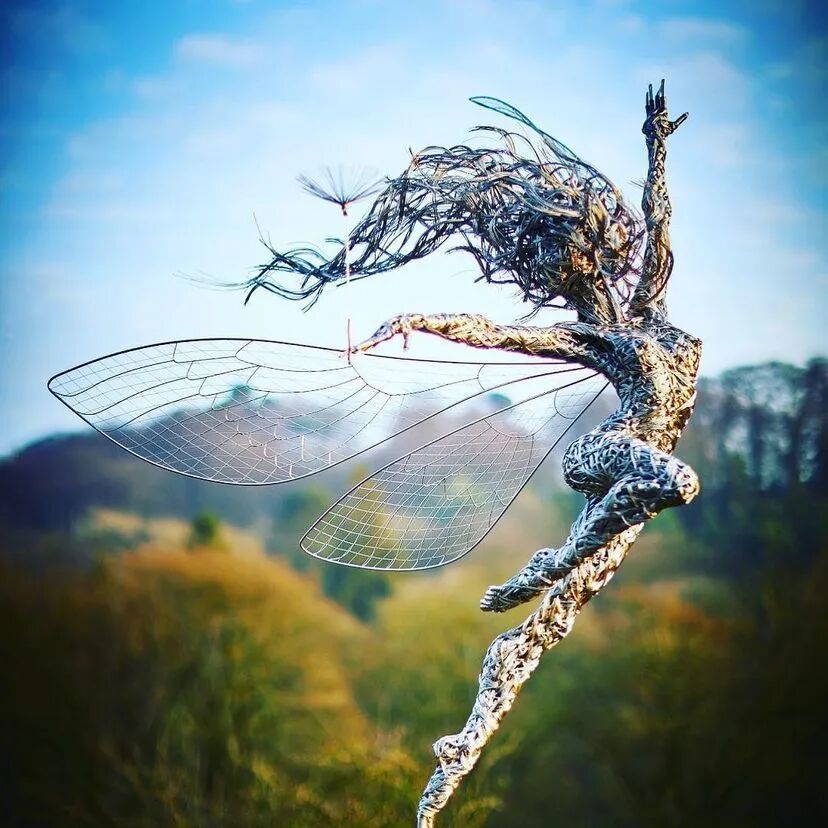 英国艺术家和雕塑家Robin Wight,出生于1960年,以创作不锈钢丝的仙女雕塑而闻名。