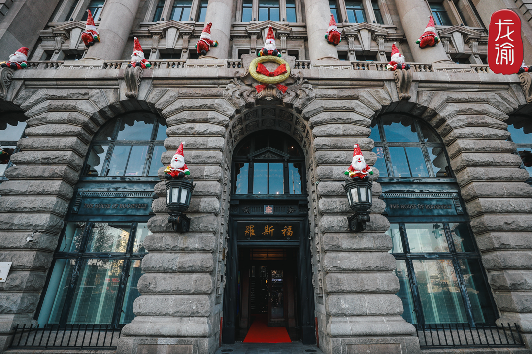 今天的外滩中山东一路27号,有一处略显隐秘的小门,门上黑底牌匾,上书楷体金色繁体字样“罗斯福”,上方正中,是一枚线条复杂的徽章。