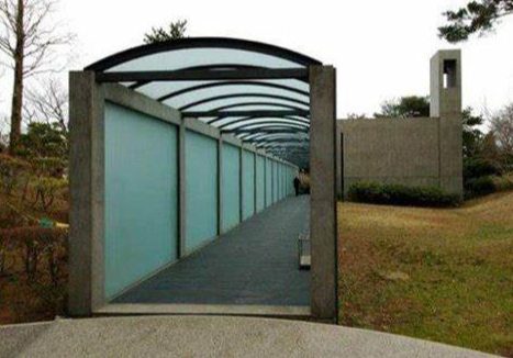 接下来说一下风之教堂,长长的长廊不仅增加了进入教堂的仪式感,同时又成了风经过的长廊,风之教堂由此得名。