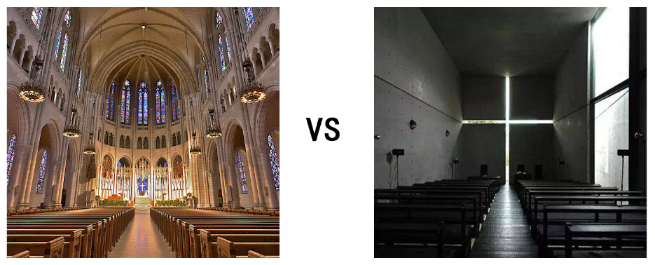 而由于所处的时代、设计语言、文化的不同,对于安藤设计的教堂,会与传统的教堂既有一些差异(改进),也有一定的共性(继承)