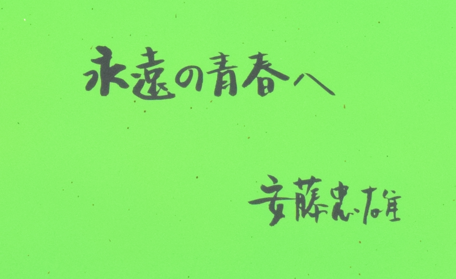 在展览的门口,安藤塑造了一个极其饱满、活力却又青涩的青苹果,上面刻着“永遠の青春”,比起他的诗意、朴实的建筑作品,苹果显得意外的鲜艳亮眼。