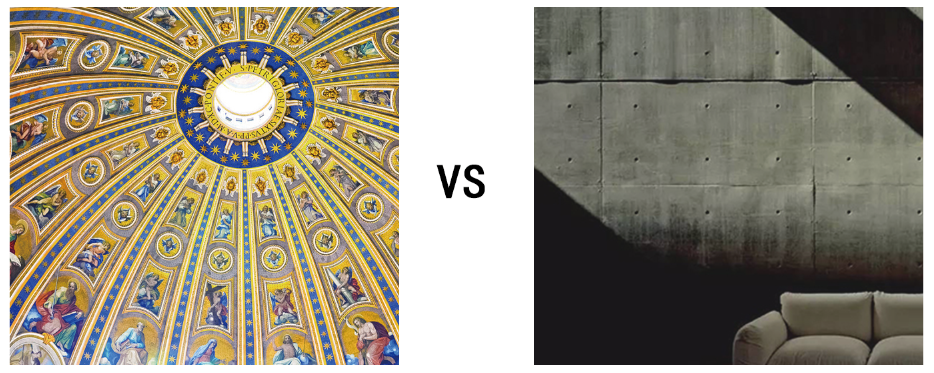 其次,在纹饰上也有所差异,欧洲的教堂属于古典建筑,大多都有繁琐的装饰,安藤设计的教堂则褪去装饰变为简洁的墙面。