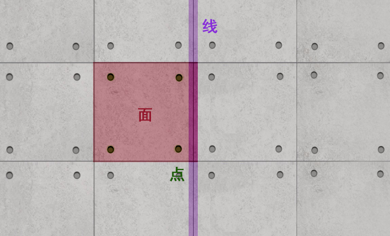 (红色为面,紫色为线,绿色为点)