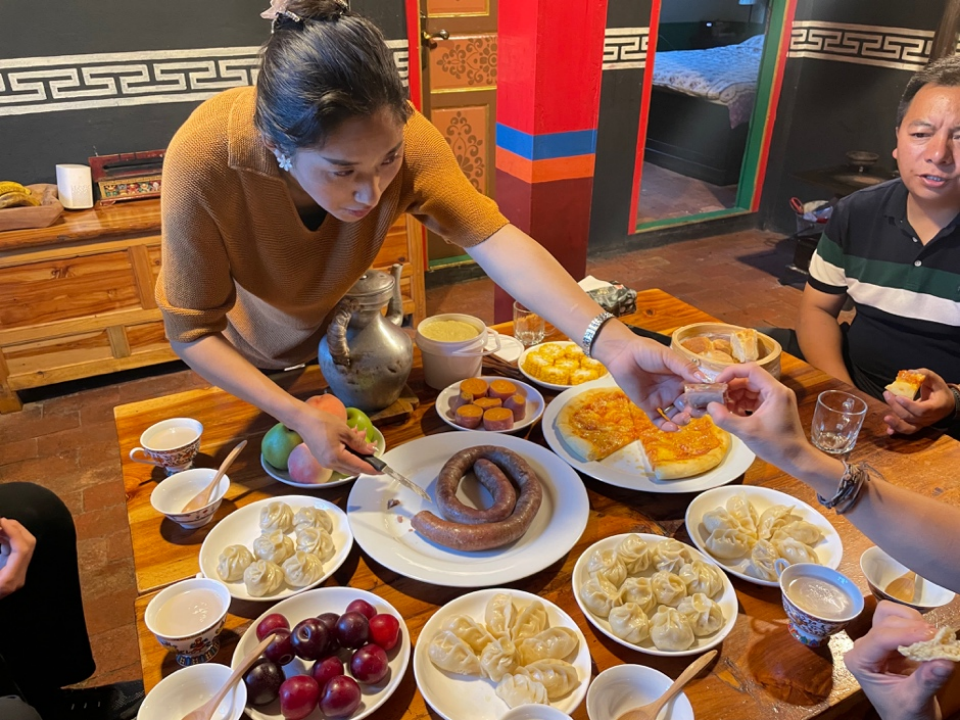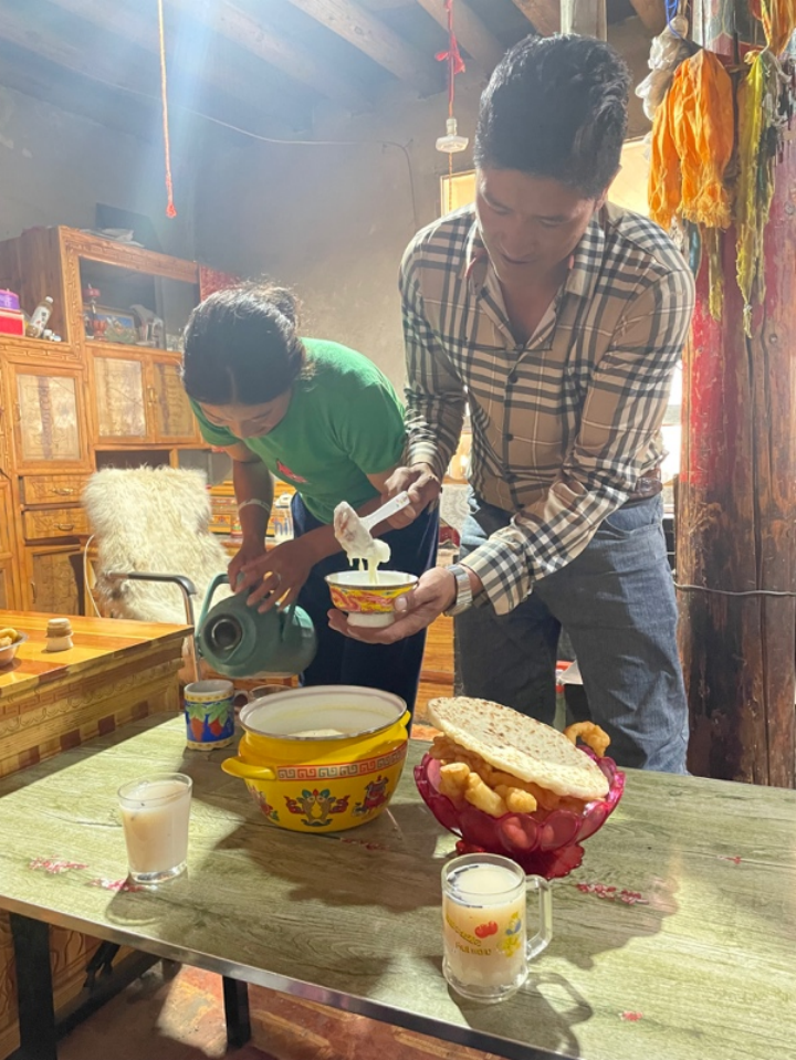 👆那哇船长家,她和夫人,请我们吃牦牛酸奶,喝酥油茶