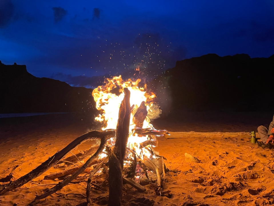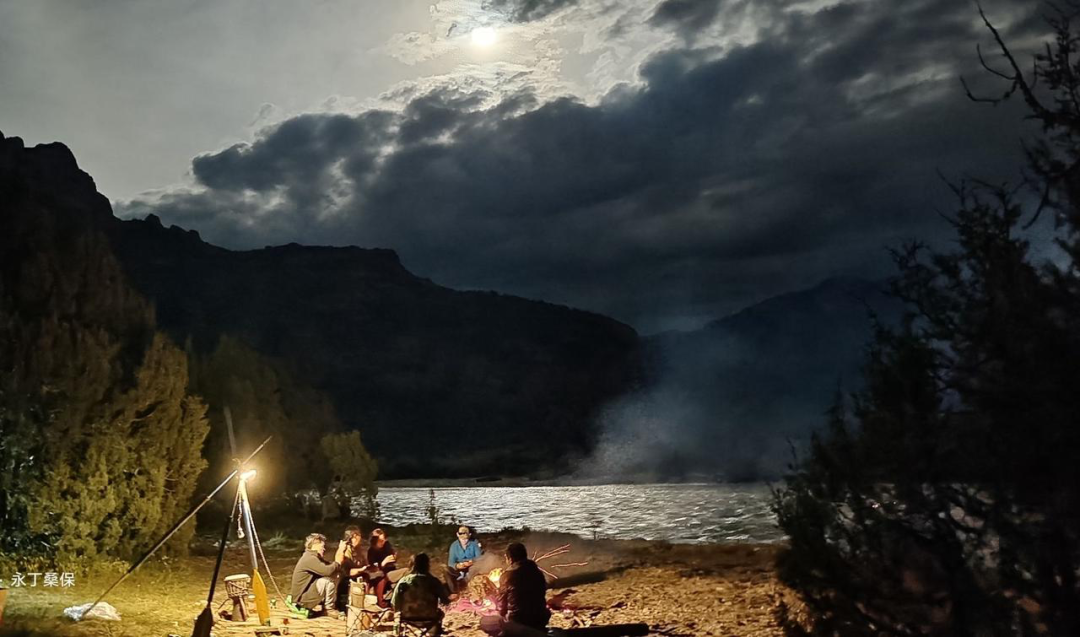 能歌善舞,也是同行的藏民们给瑞秋留下的印象。对她来说,在澜沧江露营的几天里,每天最慢的时光就是晚饭后:点一把篝火,大家一起喝酒、聊天、唱歌。团队里有5个藏族伙伴、1个昆明彝族伙伴(四哥)、4个北京人。唱歌是最主要的篝火环节,那个时候就是包括瑞秋在内的4位北京朋友的社死现场——可能大家都听过一个笑话:“全国56个民族,55个民族喝完酒都会载歌载舞,只有汉族喝完酒只会吹牛皮。”