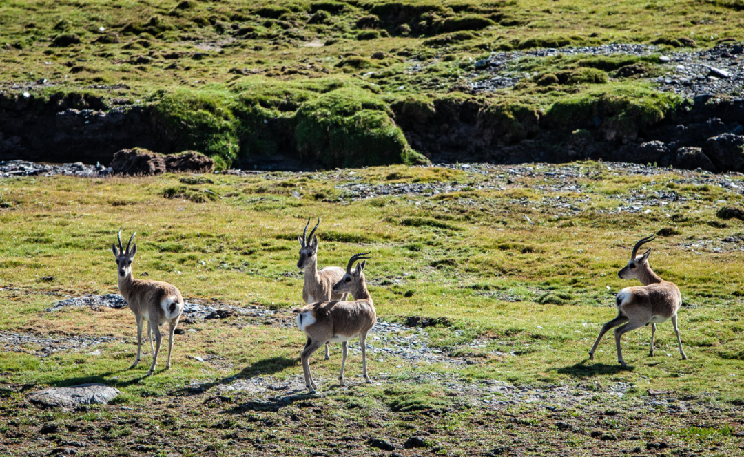 在三江源地带,一路上我们看到了金雕、大鵟、岩羊、藏狐、白马鸡、旱獭、鼠兔。开车道路上,每次刹车基本都是小鸟在地上,迟钝得飞起,还飞得很低,怕撞到他们;鼠兔更是常常突然快速横穿路面。雪豹是三江源最独特稀有的野生动物,在开车沿路和漂流的时候,大家都会紧盯岩壁,希望雪豹的出现。