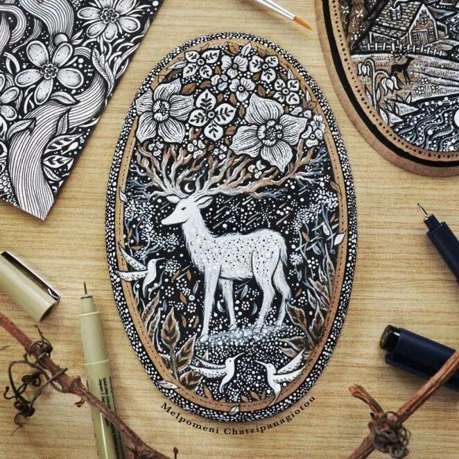 来自希腊的艺术家梅尔波梅尼,就是一个在木片上画插画的艺术家,他将美丽的插图刻在木片上,画作同样梦幻又迷人,让人陶醉极了。这位艺术家是在攻读学位期间,迷上单色插画的,在她看来,越是简单的色彩,越能传达更多的感觉、语言甚至想法。