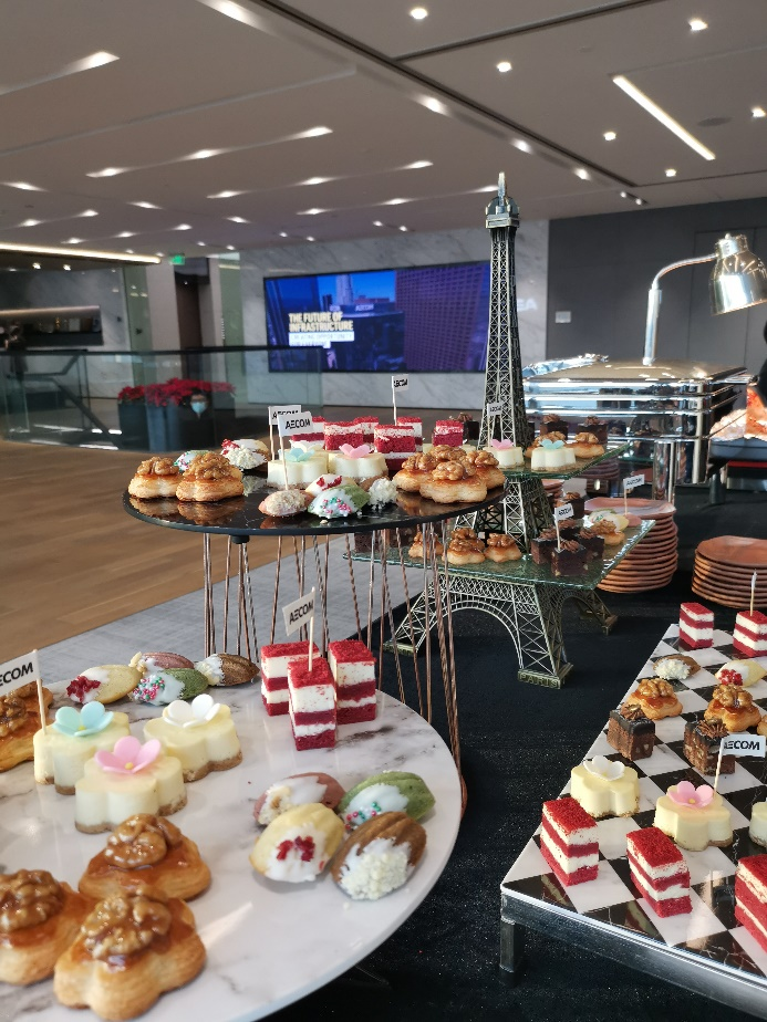 AECOM逢年过节前都会有周五下午的happy hour活动,会在12楼的屋顶花园和室内提供餐饮及游戏活动。其中露天烤肉最是供不应求,有一次活动里我们组都没吃到公司的烤肉,于是大家一起相约下班去吃烧烤店聚餐,补回烤肉“遗憾”。