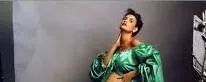 其实在拍摄现场,摩尔穿了绿裙子遮掩,但是安妮提出为什么不拍一组全L照片。