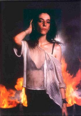 这张照片的主角是朋克教母帕蒂•史密斯,拍摄的时候,安妮让帕特站在一个着火的油桶前,帕特至今回忆起来都心有余悸,因为那毫不掺假的大火让她随时感觉会被烧掉。