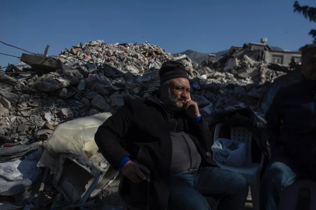 加黑特·阿什卡就在路边一直坐着,身后的废墟曾经是他的家。他的脸藏在阴影中,异常凝重。地震发生后,他亲手挖出了自己妻子的尸体,但女儿至今还埋在废墟里,他要等待见最后一面。