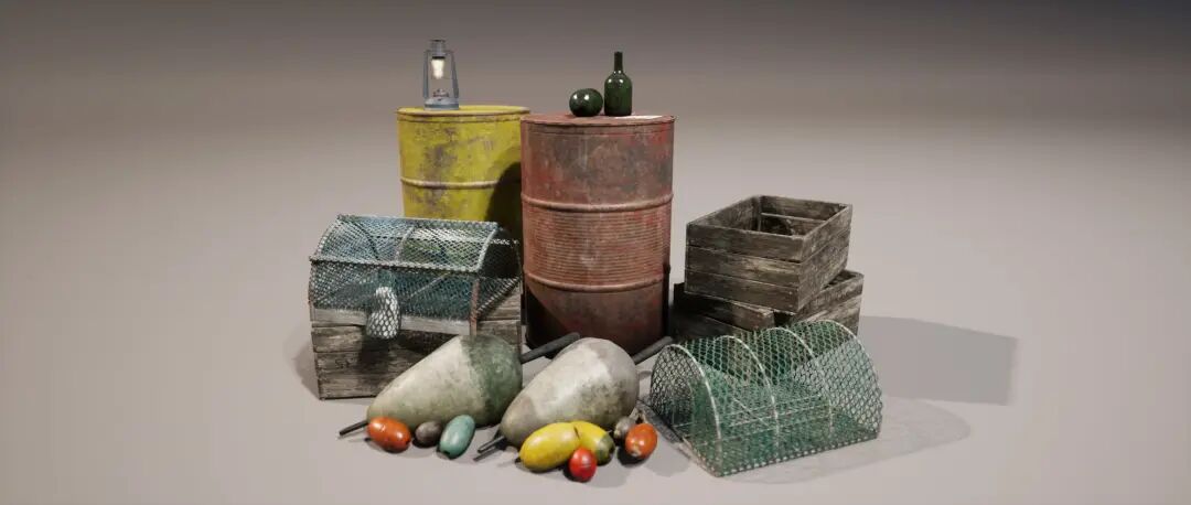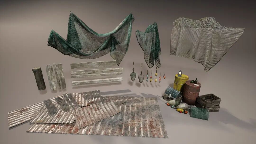 因为主体物已经确定是木房子,所以模组化制作方便一些,还有船以及湖边一些小物件,也是可以用模组化进行制作的。