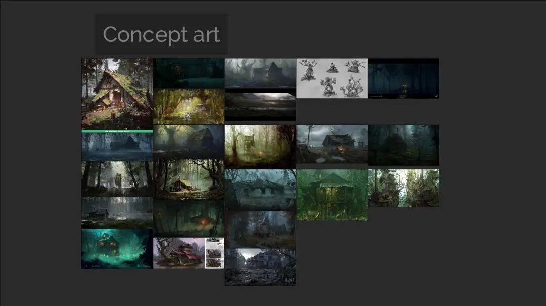 从确认整体风格开始,就可以开始收集参考资料和概念图,不过可惜的是,并没有找到任何与我想象的场景完全相同的特定概念,但是还是找了很多具有价值的参考、