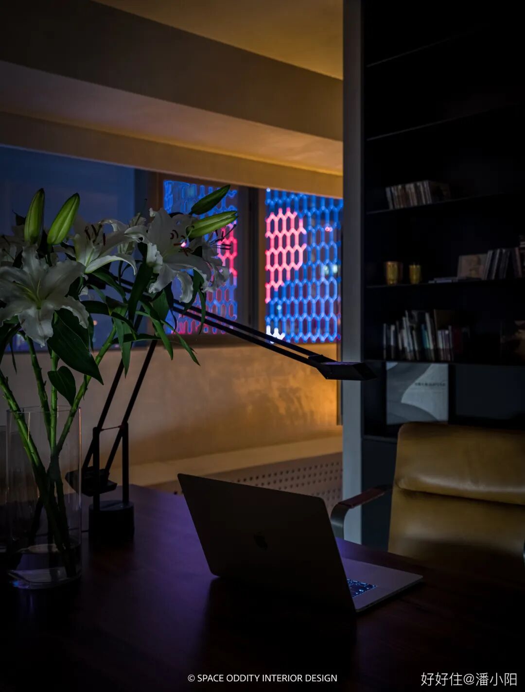 潘小阳:书房与客厅在视线上保持贯通 隔--而不--离,安稳踏实却不乏视线流动空间体验。