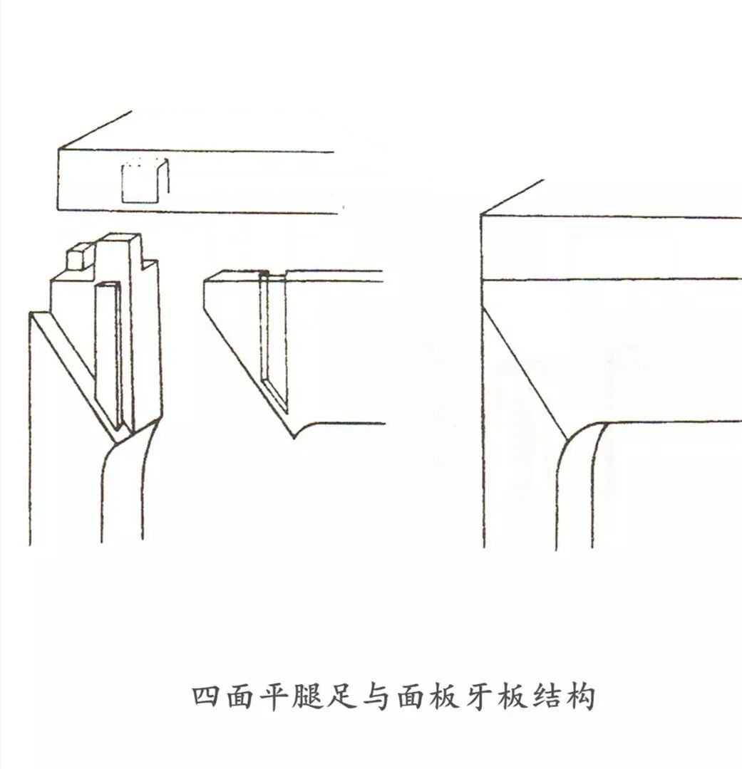 在视觉效果上,案的设计考虑前后的造型美感,大多数腿柱正面起线装饰,两边都用横或者装饰雕板相配。如果腿足带托泥,腿的侧面都不起线装饰。桌不一样,因考虑到在厅堂之中或者书房靠窗,便于用者四面走动,从每个角度,都能看到桌面和桌腿。