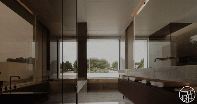 主卫的尽头,利用玻璃来延展视觉,增加空间广度▽