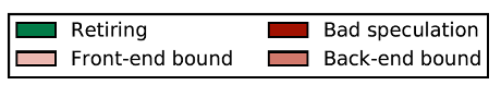这里通过一些业界和自身业务数据来量化描述上述的计算特征,这些数据主要基于TMAM(自顶向下的微体系结构分析方法)。TMAM主要采用分层的方法去确定应用的微体系结构瓶颈,在顶层将应用执行划分为四个阶段,Frontend Bound,Bad Speculation,BackendBound和Retiring,每个阶段可以再下下细分子阶段。关注ICache影响主要看Frontend Bound的占比,关注DCache影响主要看BackendBound占比。下图是我们对公司内部使用的两款开源数据库R和M的TMAM分析,其中R测试随机读场景下,M测试读和插入场景。