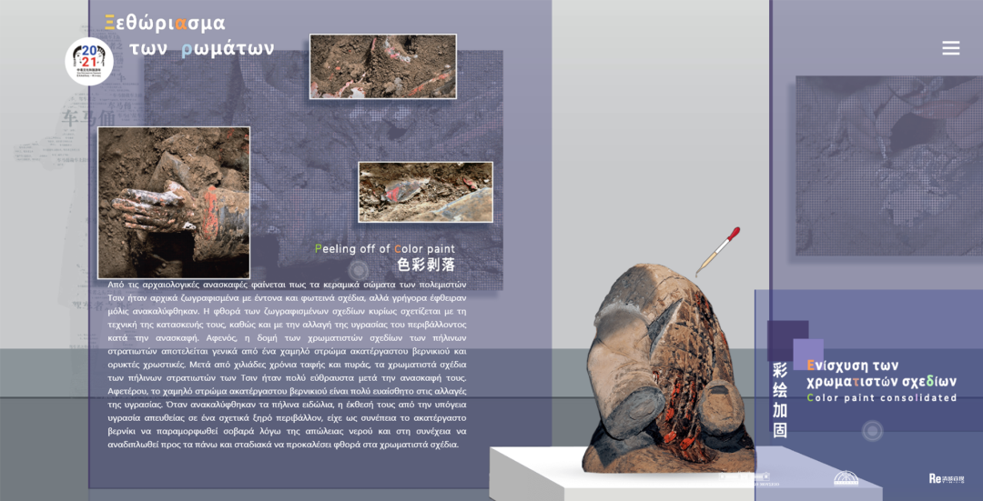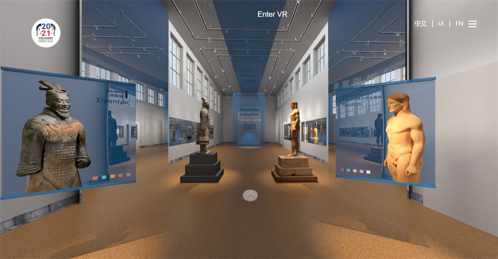 2021年 9 月 16 日,“平行时空:在希腊遇见兵马俑”线上展览正式在希腊国家考古博物馆主页和秦始皇帝陵博物院主页同步上线。此次展览由中国国家文物局与希腊文化和体育部联合主办,将持续至 2022 年 2 月 28 日。