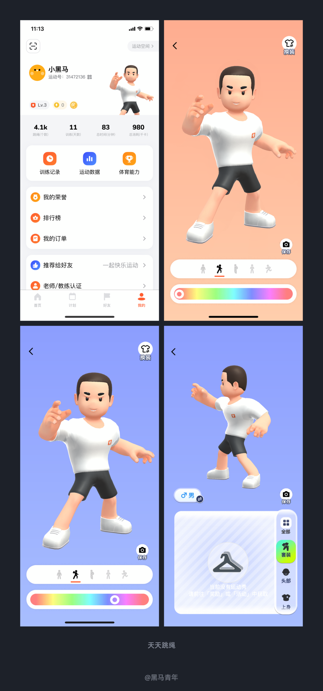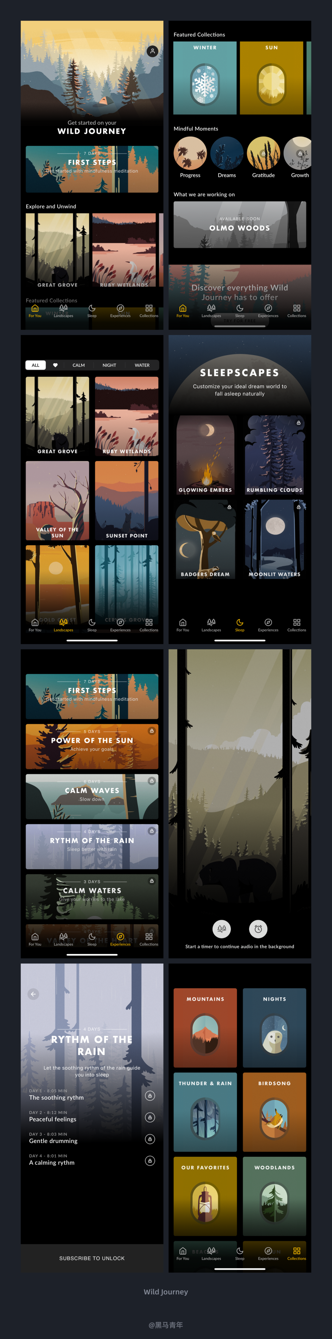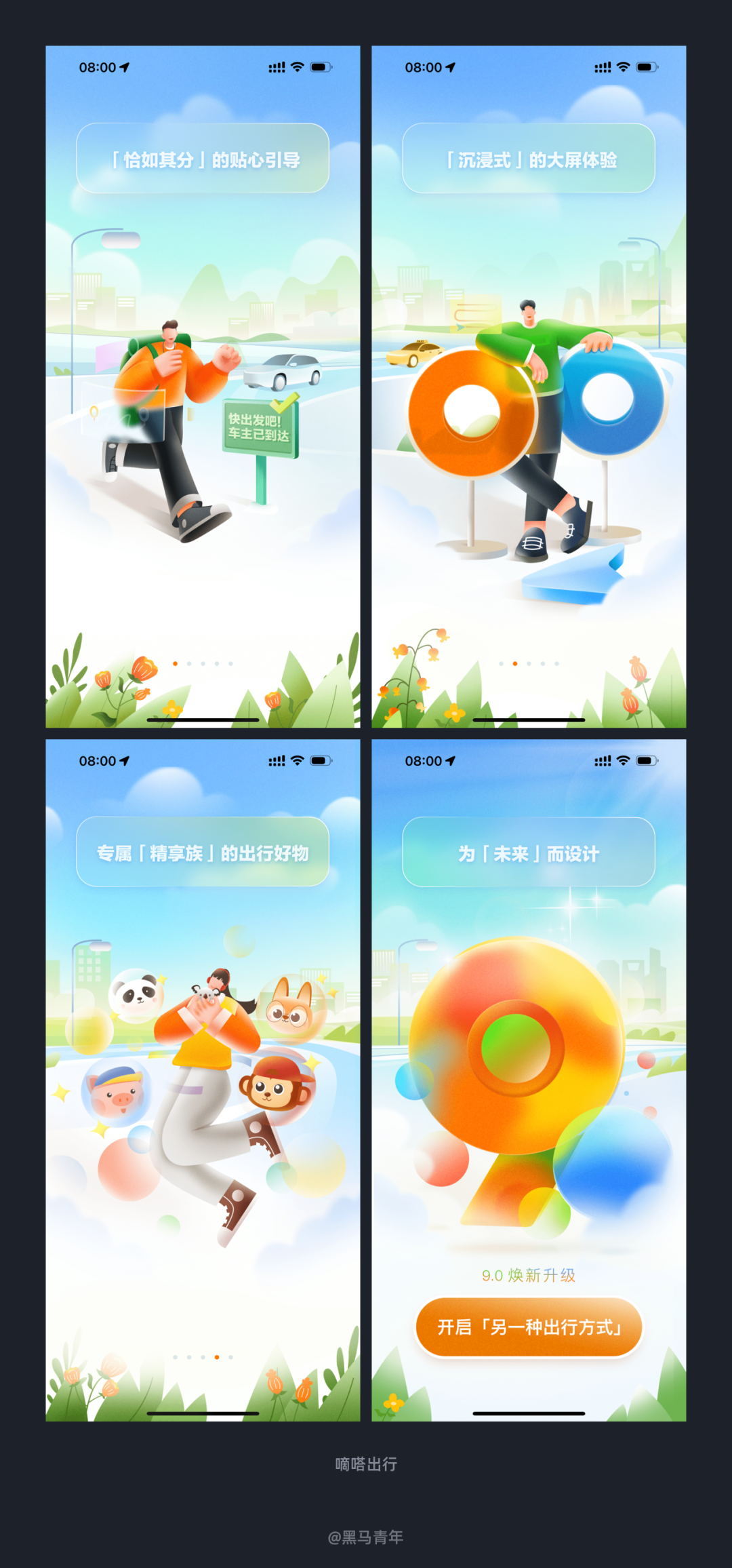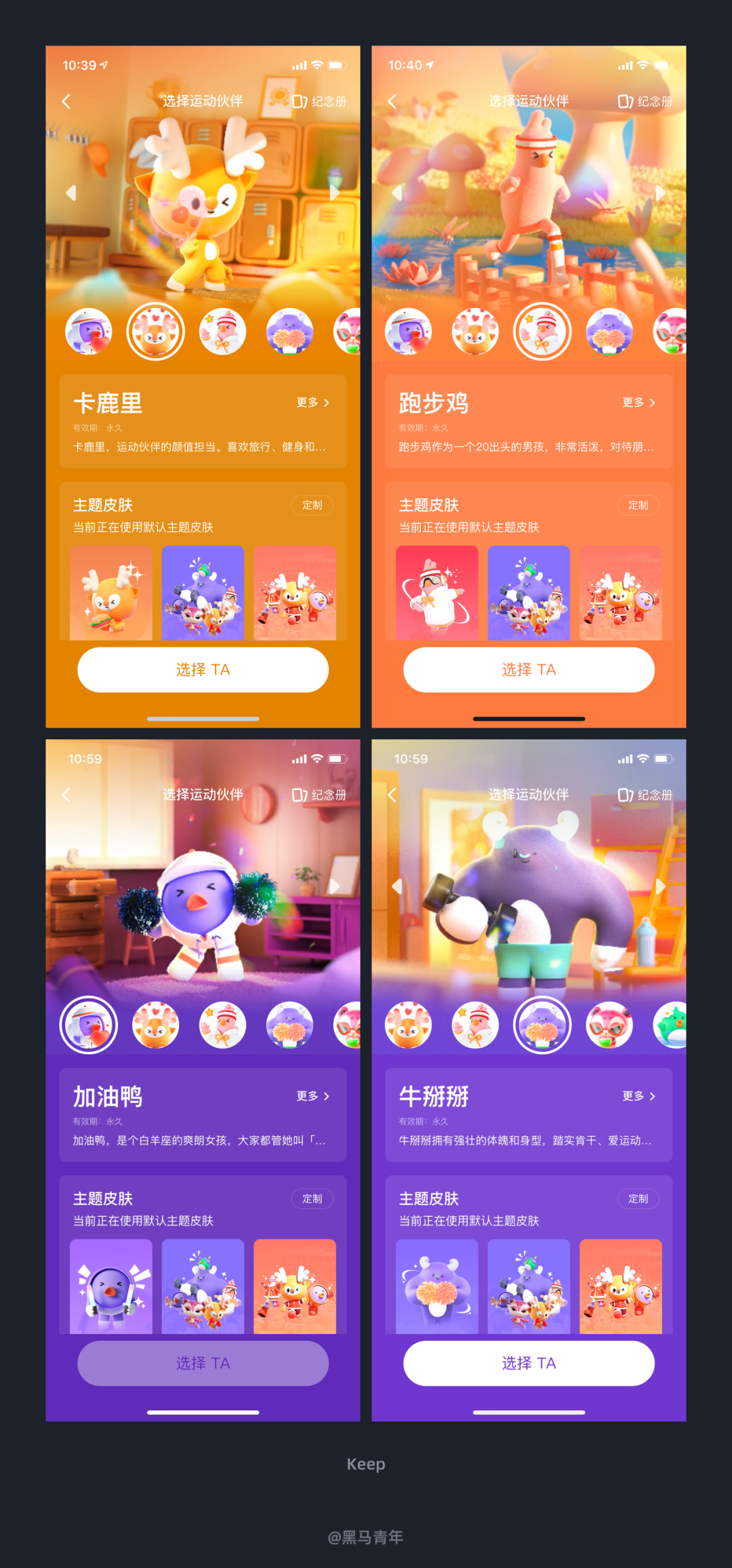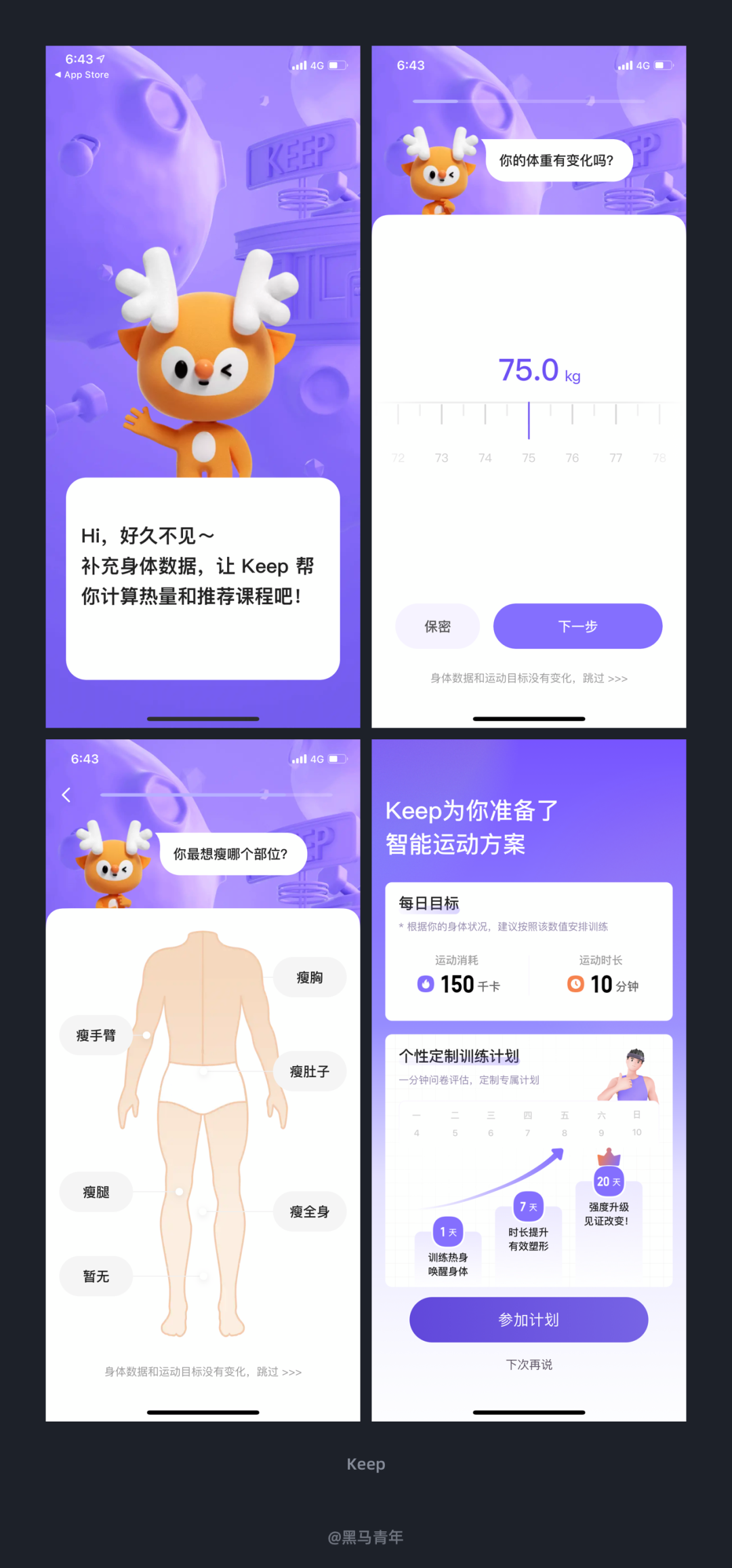 干货2024-01-16 再细心一点,就能看到不一样的设计 今天和大家分享最近体验到的一些优秀设计案例,希望可以带给大家更多设计思考。 前言 作为 UI 设计师来说,体验总结是必不可少的日常习惯,灵感的来源离不开对优秀设计的探索。黑马家族一直以来都会定期为大家带来产品体验日记的分享,对于家族内的小伙伴们也是常态化的要求。 本期黑马哥选择了最近发现的一些不错的设计案例,希望这些优秀的案例可以带给大家更多设计思考,强化我们的设计感知能力。 一、个性化的性别选择设计 完善信息对于产品来说是提升体验的关键,一些产品在初始状态会引导用户去完善,比如昵称、头像、性别、年龄等基础信息的采集。如何提高用户的设置兴趣,降低完善信息的排斥感,需要设计师进行反复推敲。 最近在体验 FLAG APP 的时候,在性别选择界面设计上区别于以往体验过的产品,将性别的可视化进行了更为情感化的强化。出色的设计让用户眼前一亮,精美的插画提高了整体设计的感官体验。该案例提供了性别选择差异化的表现,是提高常规信息界面设计视觉感的不错思路。 二、情感化的用户等级设计 用户等级是增加黏性的关键,也能通过等级带给会员更多的增值服务,激发用户的参与度。 在使用海马体照相馆 APP 的时候,个人中心在顶部视觉区域会直接显示用户等级,配合情感化的人物插画特别突出。通过左右滑动可以查看不同的等级,等级名称和对应的人物形象插画也会针对性的设计,不仅强化了用户体验,不错的视觉感也能吸引用户的关注度。 三、精美的插画助你释放压力 插画在产品设计中的曝光度越来越高,风格多样化直接影响产品风格,也能增强情感化体验。全靠插画撑起整个产品的案例是什么样子呢?最近发现了这么一款产品。 Wild Journey 是一款解压的白噪音 APP,内置了许多大自然的声音,让用户体验到荒野的空旷、森林的静谧、大海的波涛。整个设计全是精美的矢量插画作品,带给用户赏心悦目的感官体验。来这里释放自己的压力,放松身心。 四、趋势化的引导页设计 引导页设计是最容易呈现风格趋势的,利于设计师进行创意发挥。无论是想要发挥插画技能、建模能力或者动效表现,引导页都能提供发挥的场景。 最近在体验嘀嗒出行的时候,发现全新升级的 9.0 版本,引导页设计风格也是让人耳目一新。利用了趋势感的插画风格和视觉表现风格(玻璃质感风)相结合,画面清新自然,带给用户非常好的视觉感官体验。 五、可视化表现提高用户理解度 可视化设计逐步成为信息传递的趋势,利用图形化的形式更利于用户理解,相较于枯燥的文字化呈现来说阅读理解的效率更高。 Keep 在产品设计的时候,有效的将一些数据的表达和内容的普及以可视化的图形进行展示,不仅提高了界面设计的感官体验,也能有利于用户对于内容的理解。提高界面设计的视觉感也能让用户更为关注,图形可视化已经逐步成为产品设计解决方案中的趋势。 六、个性化的主题皮肤设置 个性化的定制设计可以让用户感受到产品的温度,根据自己的喜好选择主题化呈现。成熟的产品都会在个性化设置上面提升体验度,特别是在主题皮肤的定制上面,提供了更多的风格让用户选择。 Keep 在将主题皮肤设置定义为选择运动伙伴,不仅提供了不同的 IP 形象和主题皮肤,俏皮可爱的动态延展也传递了情感化的体验。多种风格的设计满足了不同用户的喜好需求,还为不同的主题定义了拟人化的角色和身份,视觉感和体验度都非常的到位。 七、提高参与度的签到设计 签到设计可以提高用户黏性,让用户在参与的同时获得礼品或者增值服务,签到也成为了众多产品的标配功能。对于设计师来说,如何通过设计提高用户签到的参与度,是需要不断探索的设计思考。 最近在使用天天跳绳时,发现其签到设计的视觉表达直观醒目,大大的提高了用户对于签到的理解和参与度。将签到后解锁的勋章、经验、装扮和礼品等直观的结合到签到界面中,不仅风格协调统一,视觉风格也符合运动场景感。看到这个界面成功吸引了我的签到欲望,签到操作简单,整体的体验度都做得非常不错。 八、情感化的个人中心设计 个人中心作为主界面之一来说,设计的体验度是至关重要的。为了满足用户的喜好需求,个性化的设置也是层出不穷,功能布局、头像装扮、主题皮肤等都呈现出了众多的优秀设计方案。 天天跳绳是个人经常使用的一款运动辅助工具,记录小孩跳绳也是非常便利的工具。个人中心顶部视觉区域的人偶形象增强了界面设计的感官度,人偶的动态体现出用户的运动状态,可以进行自定义的设置来满足自己的情感表达。可以设置人偶的装扮、旋转角度、动作等,人性化的功能设置提高了自定义的体验度,强化了用户情感化的使用体验。 九、结果导向的设计表达 以图标/图形/图片等设计辅助信息的传递很常见,通常都是根据信息的文案来进行设计表达。如果放弃本身文案信息传递的意思,选择结果导向的设计表达,也能带来不一样的设计反思。 最近在体验 One More 的时候,动作库的列表设计中便选择了结果导向的思路。如果是常规的设计解决方案,会根据列表主题内容来设计配图,这样也能辅助对于内容的理解。但是 One More 选择了完成该项目得到的锻炼部位为设计思路,虽然不能辅助项目信息的传递,但