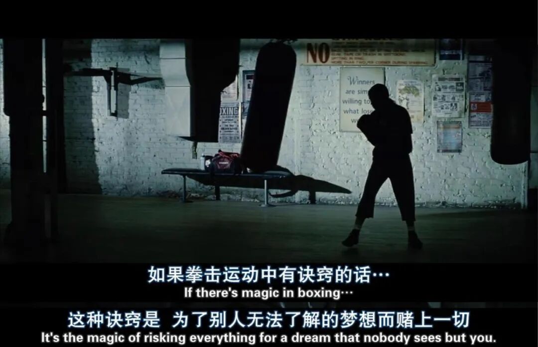 摩根·弗里曼在《百万美元宝贝》的旁白中说道,「拳击是一项不自然的运动,因为其中的每样东西都是反着的。有时候,打出一记重拳最好的方法是后退一步;如果你想去左边,你不能往左迈步,要先靠右脚趾发力;不能像常人一样逃避伤害,要迎痛而上……拳击是一项关于尊严的运动,赢得你自己的,同时剥夺别人的。」这不就是人生吗。