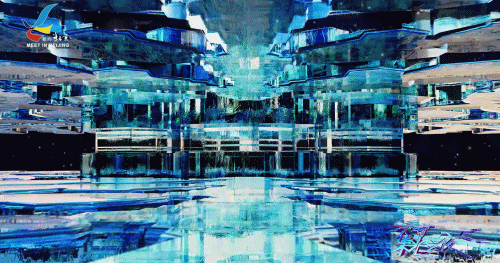 整个演出场馆以雪花的「六片花」为原型延伸设计出“集光雪原、远古洞窑、流光水洞、海底雨林、古楼摘星、天际轨道”六个充满冰雪氛围的虚拟场馆,打造纵向多层次平行世界,为参与者带来前所未有的沉浸式交互虚拟娱乐体验。