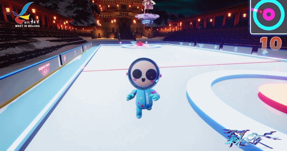 当用户化身“集光者”时,不仅可以通过虚拟形象第一视角与虚拟偶像实时互动、同台交互,还可以通过体验雪橇、冰壶等冬奥同款项目游戏,切实感受冬奥魅力,实现交互体验的无限放大。