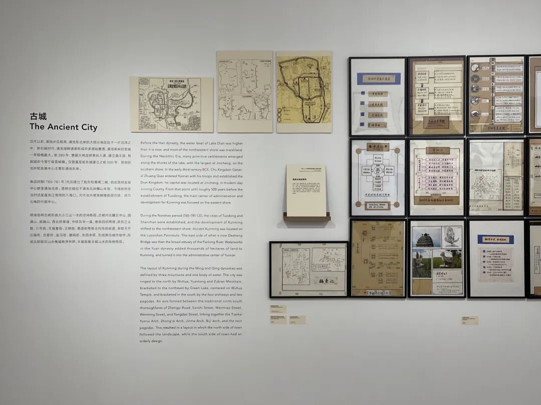 其中以昆明文庙、云南大学会泽院、云南陆军讲武堂。昆明英雄纪念碑等为案例研究了建筑立面、空间和历史沿革背景等。其中在记录翠湖环线的历史资料中发现了了老昆明城的九巷十三坡,再现了当时昆明城区的发展和变迁。展览还通过大量的历史文献资料,通过复制模型、平面图、空间图和历史资料、名人回忆录等方式,详细展现了滇中历史建筑的传承与发展以及学者长久以来对于滇中传统民居的研究。