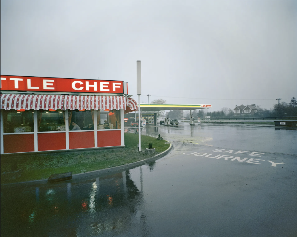 Little Chef in Rain, St Neots, Cambridgeshire, May 1982 ©️ Paul Graham