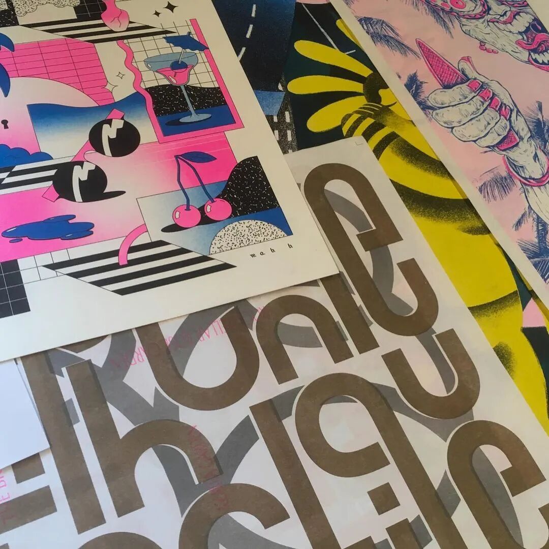 他们在乌得勒支(Utrecht)郊外的樱桃园经营着工作室,具有丝网印刷和Risograph的印刷设备。
