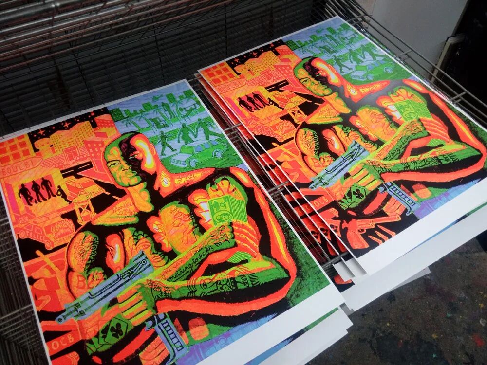 他们非常喜欢探索不同的技术和使用不同寻常的材料,经常在不同的材质上进行印刷,除了纸张还包括木材、软木、亚克力、金属、橡胶等等。